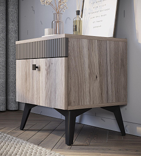 Тумба прикроватная КАССАНДРА ТБ-11 // Дуб Смоки/MF14 - Ш 452 х В 470 х Г 380 мм 2 шт.