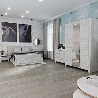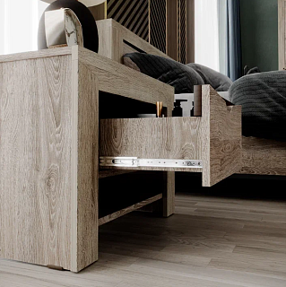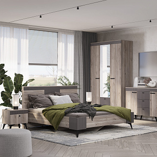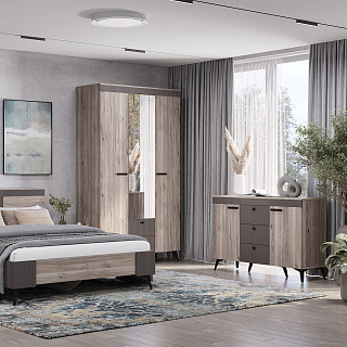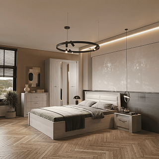 Элегантная модульная спальня КАССАНДРА (Дуб Смоки / MF14) — это идеальное воплощение современной классики и актуальных интерьерных трендов, созданное для организации безупречного пространства для. Сдержанная и благородная коллекция выполнена в популярных пудрово-пыльных оттенках «дуб смоки», которые наполняют интерьер мягкостью, придавая спальне неповторимую атмосферу абсолютной гармонии и уюта. Продуманный модульный ряд позволяет собрать индивидуальную композицию под любые габариты комнаты: в серию входят комфортная двуспальная кровать с изящными вставками из МДФ, вместительный трехстворчатый шкаф с грамотным зонированием гардероба, функциональный широкий комод и эргономичные прикроватные тумбы. Контрастным акцентом на фасадах выступают стильные черные комбинированные ручки из АБС-пластика. Особая гордость коллекции — надежные металлические опоры высотой 150 мм, которые не только придают массивным модулям визуальную легкость, но и обеспечивают беспрепятственный доступ для влажной уборки и работы робота-пылесоса. Если вы планируете купить стильную модульную спальню в пудровых тонах на высоких ножках, коллекция КАССАНДРА станет абсолютно лучшим выбором благодаря своей эргономике, надежной фурнитуре с шариковыми направляющими и безупречному качеству исполнения каждой детали.