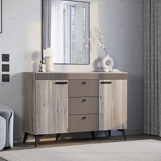 Комод КАССАНДРА КМ-12 // Дуб Смоки/MF14 - Ш 1352 х В 920 х Г 442 мм