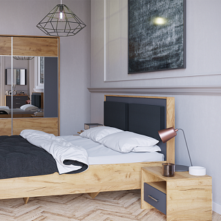 Кровать КАССАНДРА КР-19 // Дуб Смоки/MF14 - Ш 1634 х В 994 х Г 2130 мм