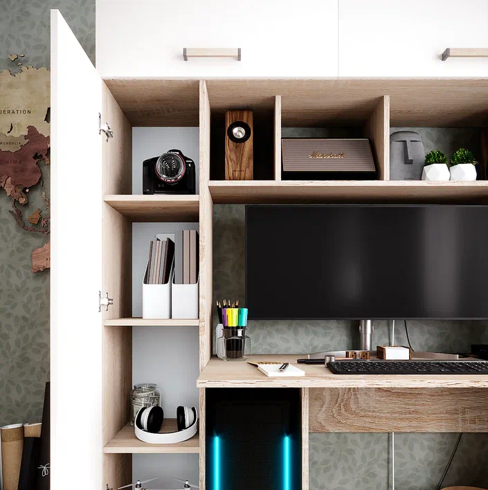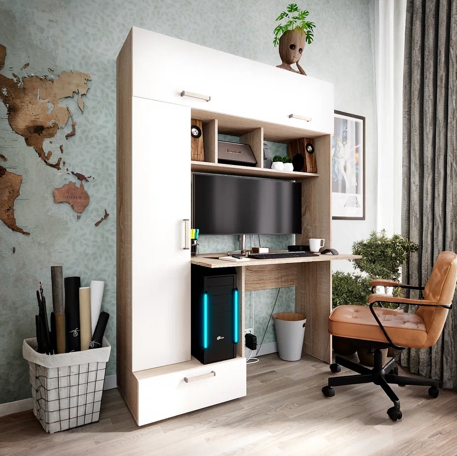 Стол компьютерный КВАРТЕТ-11 // Дуб сонома, Белый