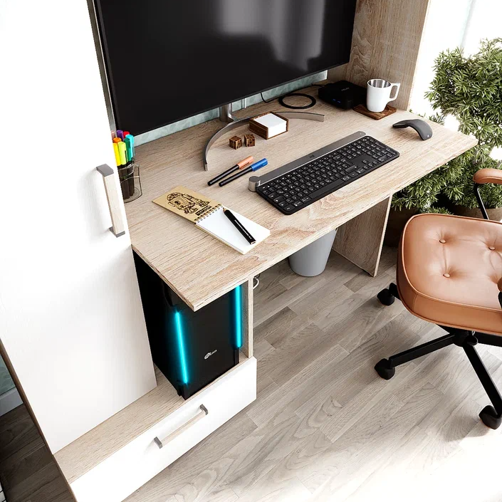 Стол компьютерный КВАРТЕТ-11 // дуб крафт табачный,дуб крафт белый