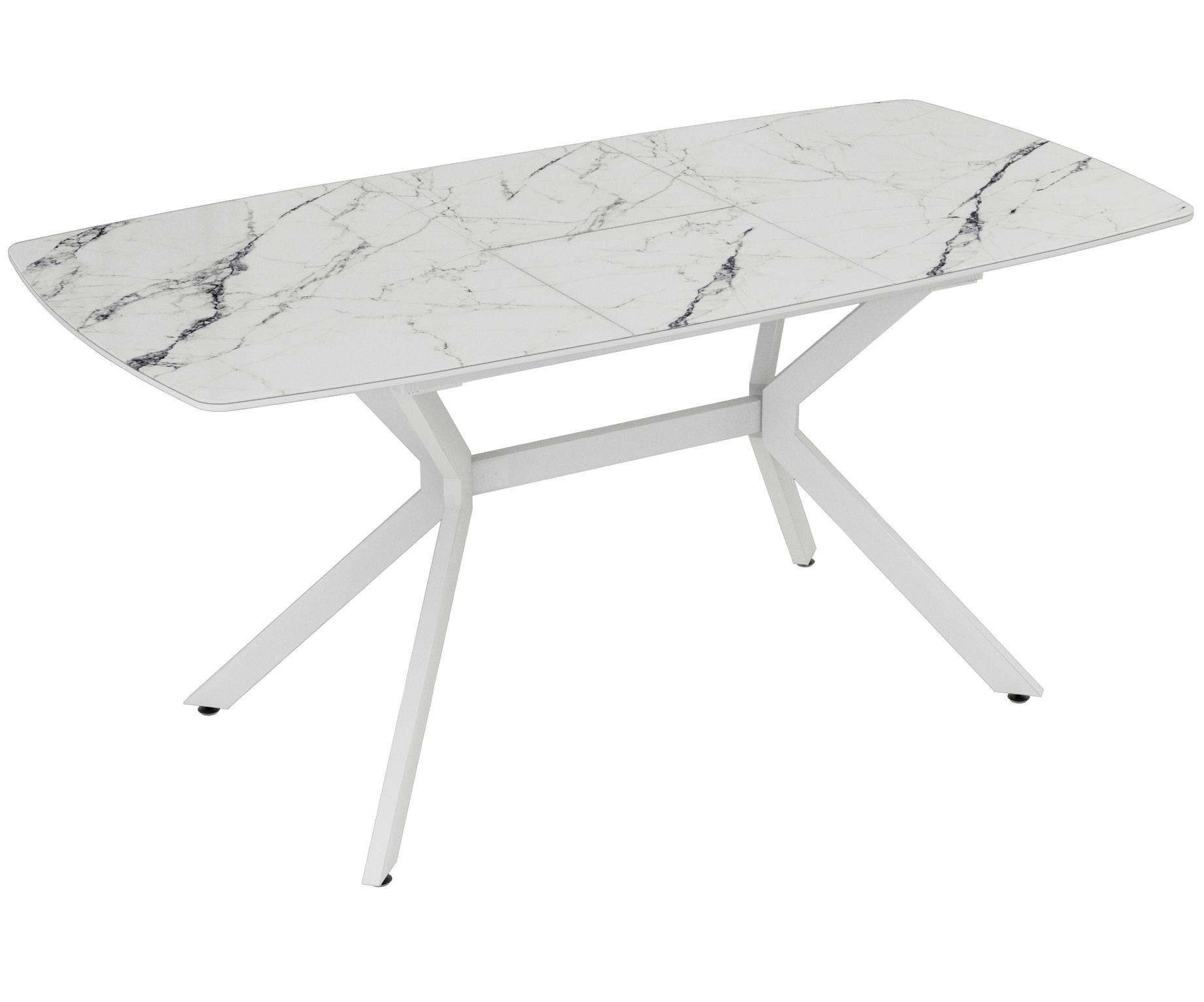 Стол обеденный раздвижной ДЖЕРСИ стекло с фотопечатью // белый, мрамор белый