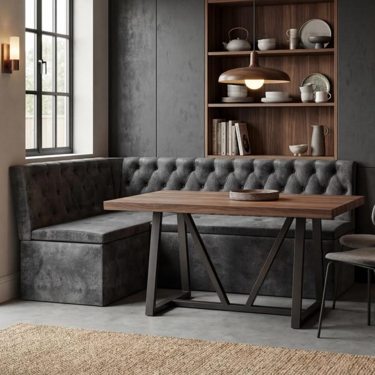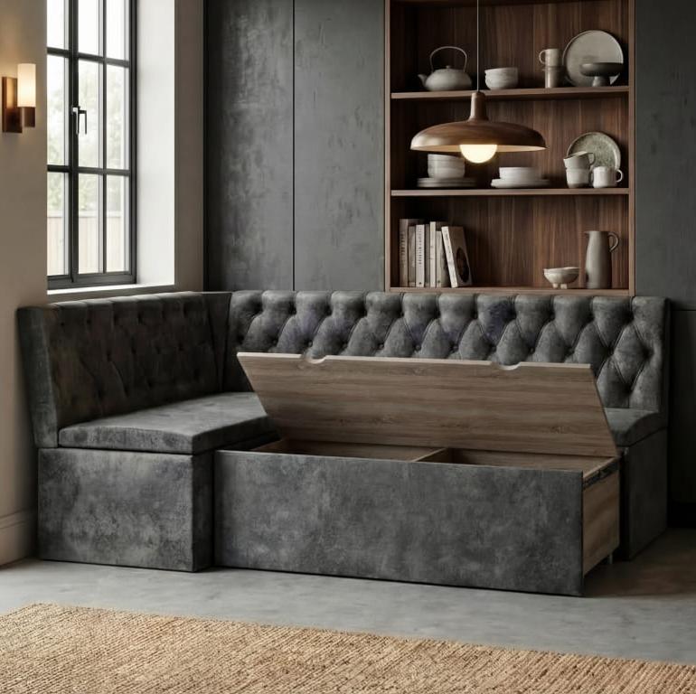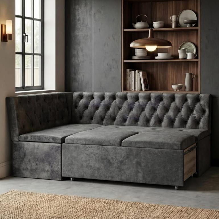 Кухонный уголок со сп.местом КВАДРО тип 1 исп.2 классик // венге/трюфель, велюр темно-серый, Универ.