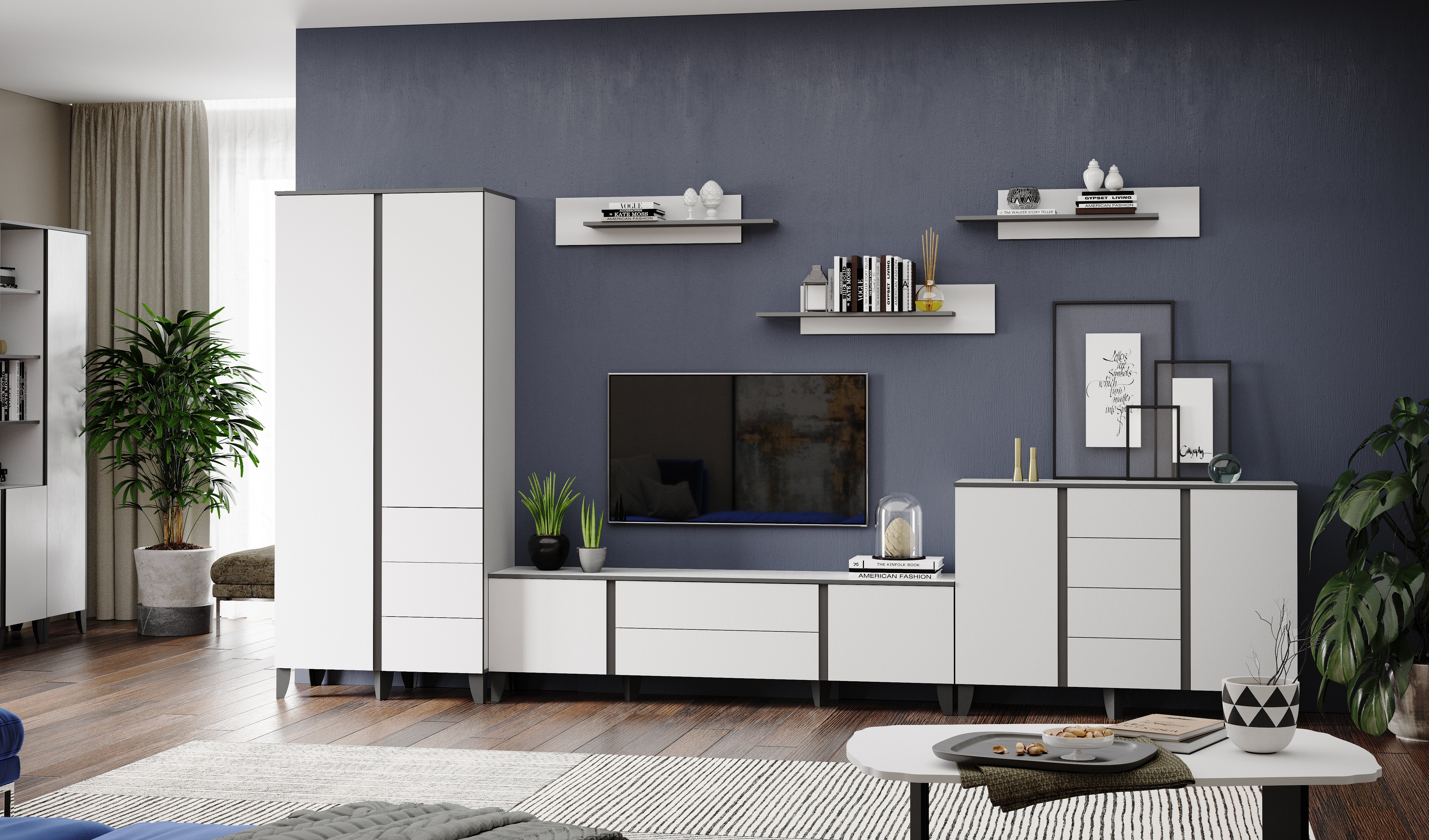 Полка навесная АМАРА // белый/серый графит