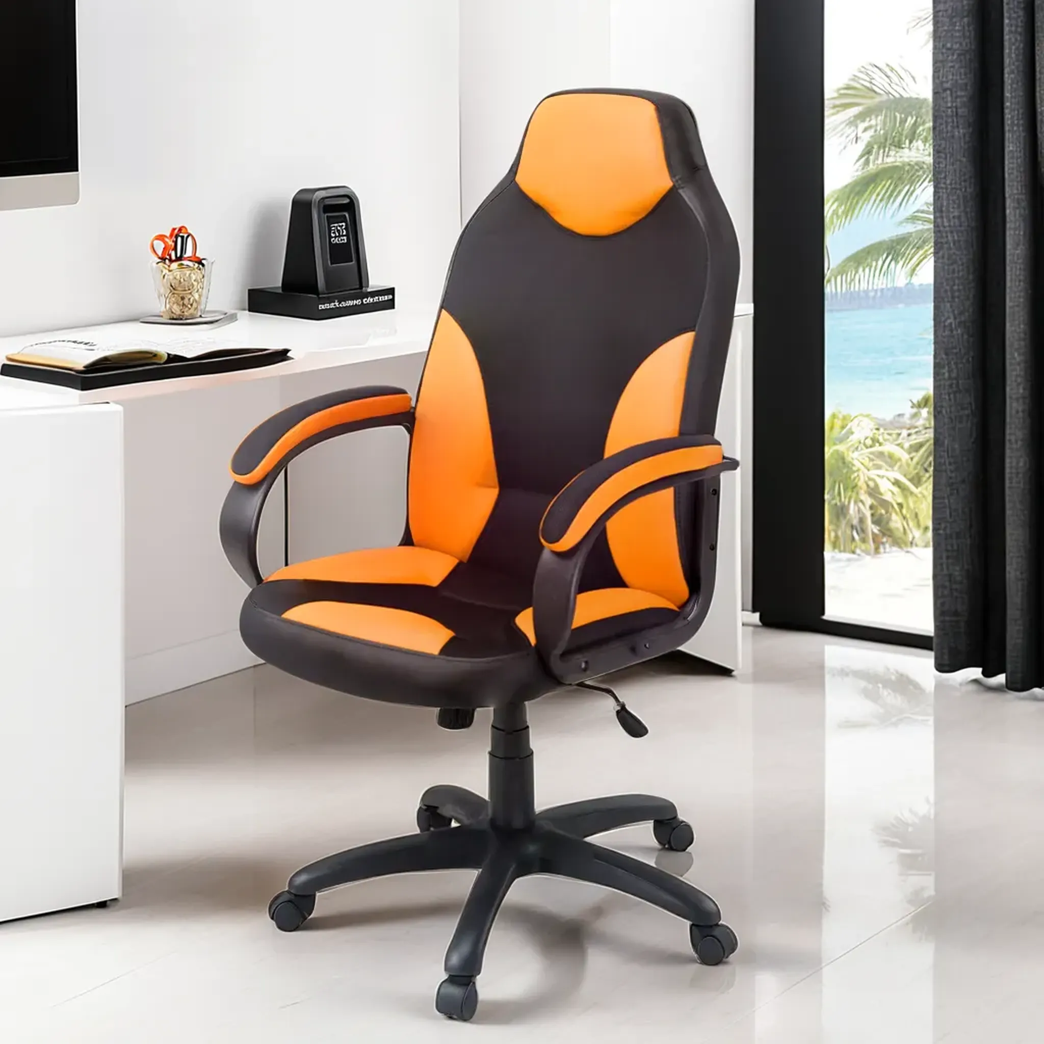 Кресло офисное ДЕЛЬТА // искусственная кожа, черно-оранжевый