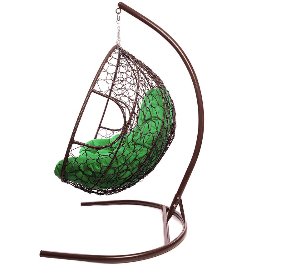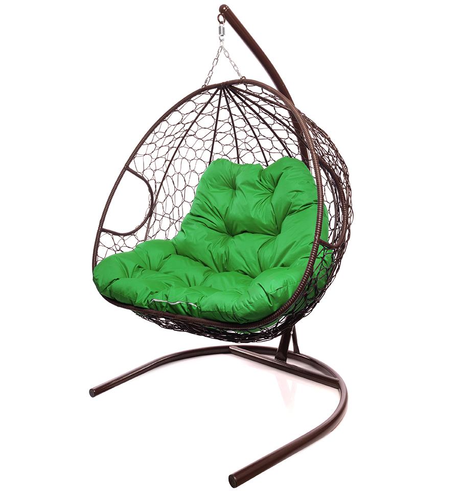 Кресло подвесное ДЛЯ ДВОИХ с ротангом // зеленая подушка, коричневый