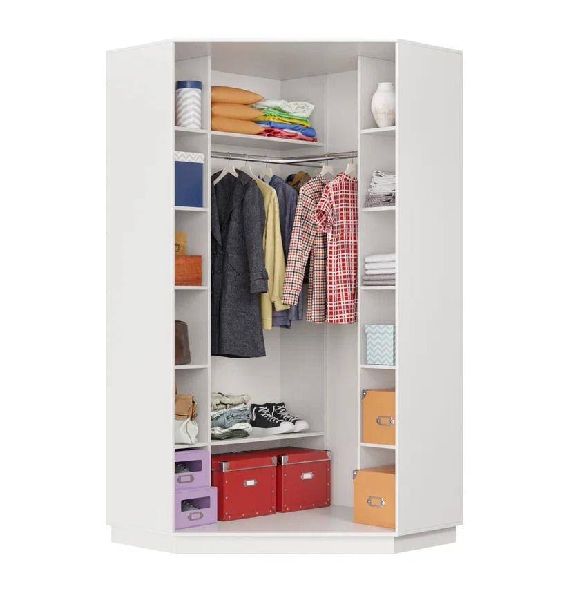 Эргономичный шкаф-купе угловой Классика 71 в белоснежном корпусе — это находка для тех, кто хочет максимально эффективно задействовать угол даже в узком помещении. Компактная модель шириной 1100 мм и глубиной 450 мм оснащена двумя фасадами: один глухой, второй — с ростовым зеркалом, что делает этот белый шкаф с зеркалом визуально легким и практичным. Главное преимущество модели скрыто внутри: продуманная система хранения включает две боковые секции с пятью полками каждая, а центральная зона оборудована уникальной конструкцией из двух штанг на системе Joker, соединенных под прямым углом, что позволяет разместить одежду на плечиках даже при небольшой глубине боковин. Вместительная антресоль идеально подойдет для сумок и сезонных вещей. Если вы планируете купить угловой шкаф-купе, который превращает «мертвую» зону угла в полноценную гардеробную, эта модель станет лучшим выбором. Выбирайте вместительный угловой гардероб для идеального порядка в небольшой спальне или прихожей.