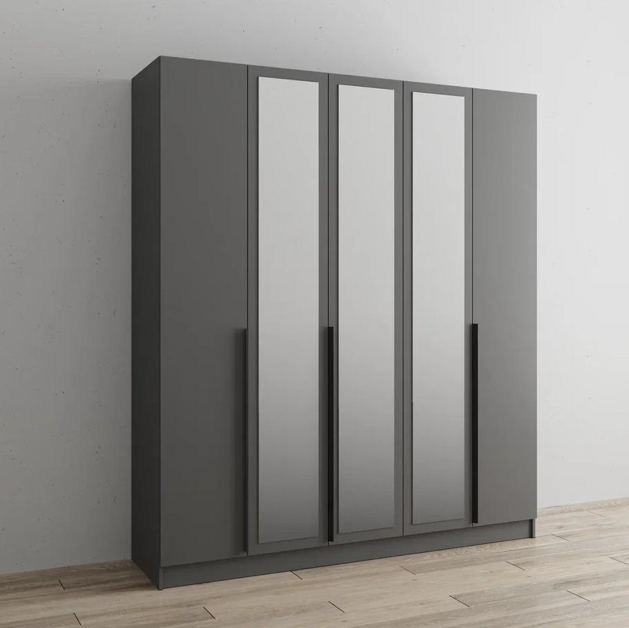Шкаф пятистворчатый МАДРИД (2,0) с 3 ящиками внутри с зеркалом // графит серый