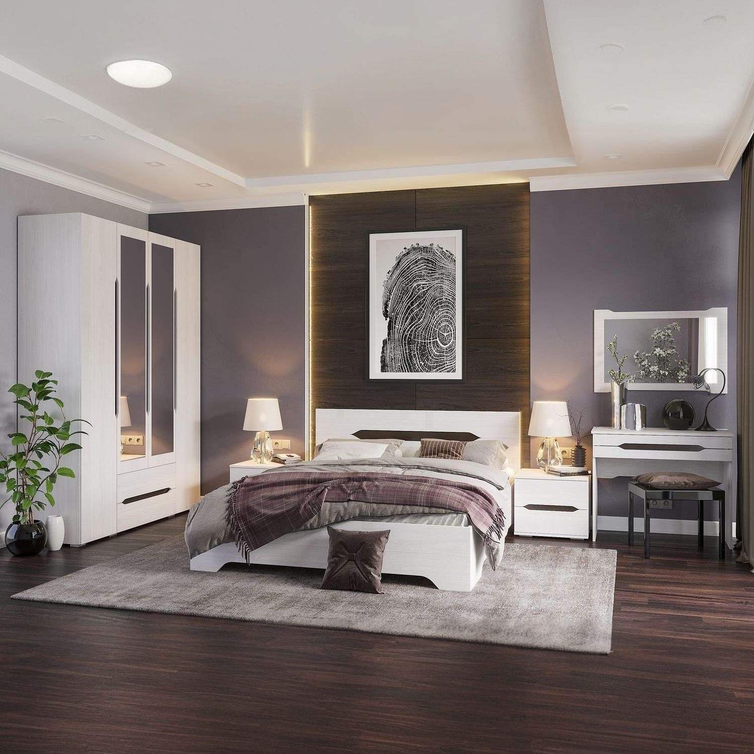 Модульная коллекция мебели ВАЛЕНСИЯ в современном декоре Дуб Анкор — это универсальное решение для комплексного обустройства спальни, отличающееся лаконичным дизайном без ручек с контрастными вырезами (вставками) в цвете венге. Серия позволяет собрать идеальный гарнитур под любые габариты комнаты, предлагая широкий выбор шкафов для одежды.Для организации хранения вещей предусмотрены функциональные комоды — широкий комод ВАЛЕНСИЯ КМ-012 (1200 мм) и узкий комод ВАЛЕНСИЯ КМ-011 (800 мм) с роликовыми направляющими, а зону отдыха гармонично дополнят двуспальная кровать ВАЛЕНСИЯ КР-012 (160х200) с прикроватными тумбами ТБ-011 и уютный бьюти-уголок, состоящий из туалетного столика СТМ-011 и зеркала ЗР-011.