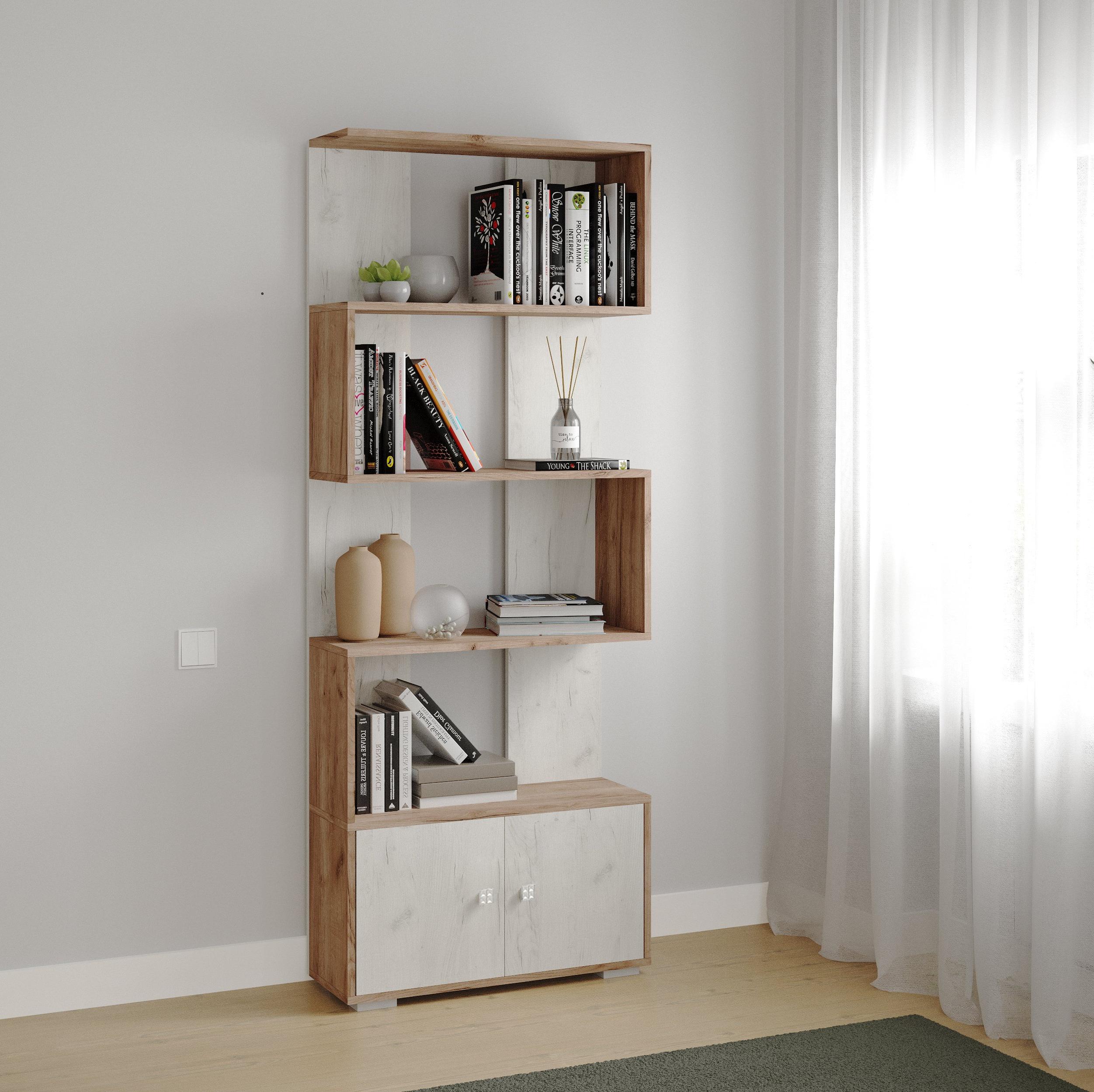 Стеллаж РОМЕО-2 // дуб крафт табачный,дуб крафт белый