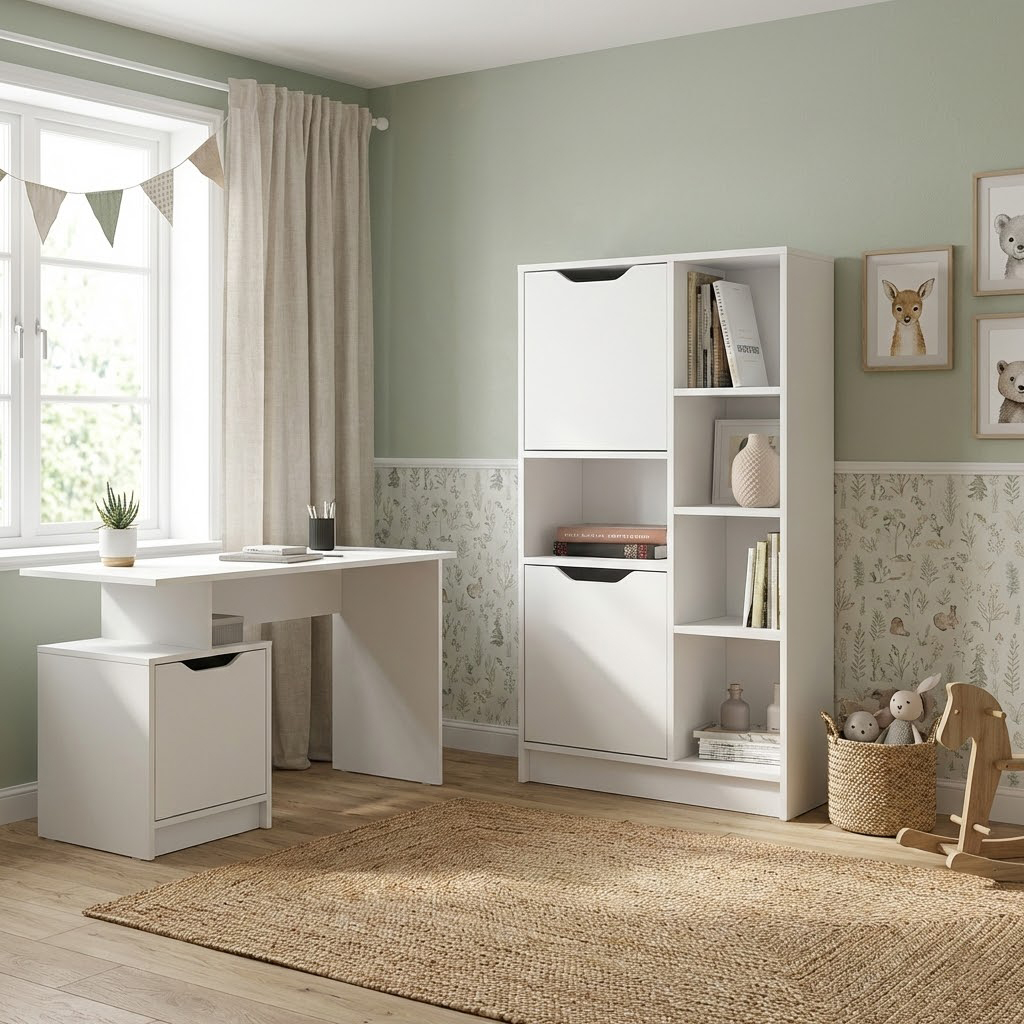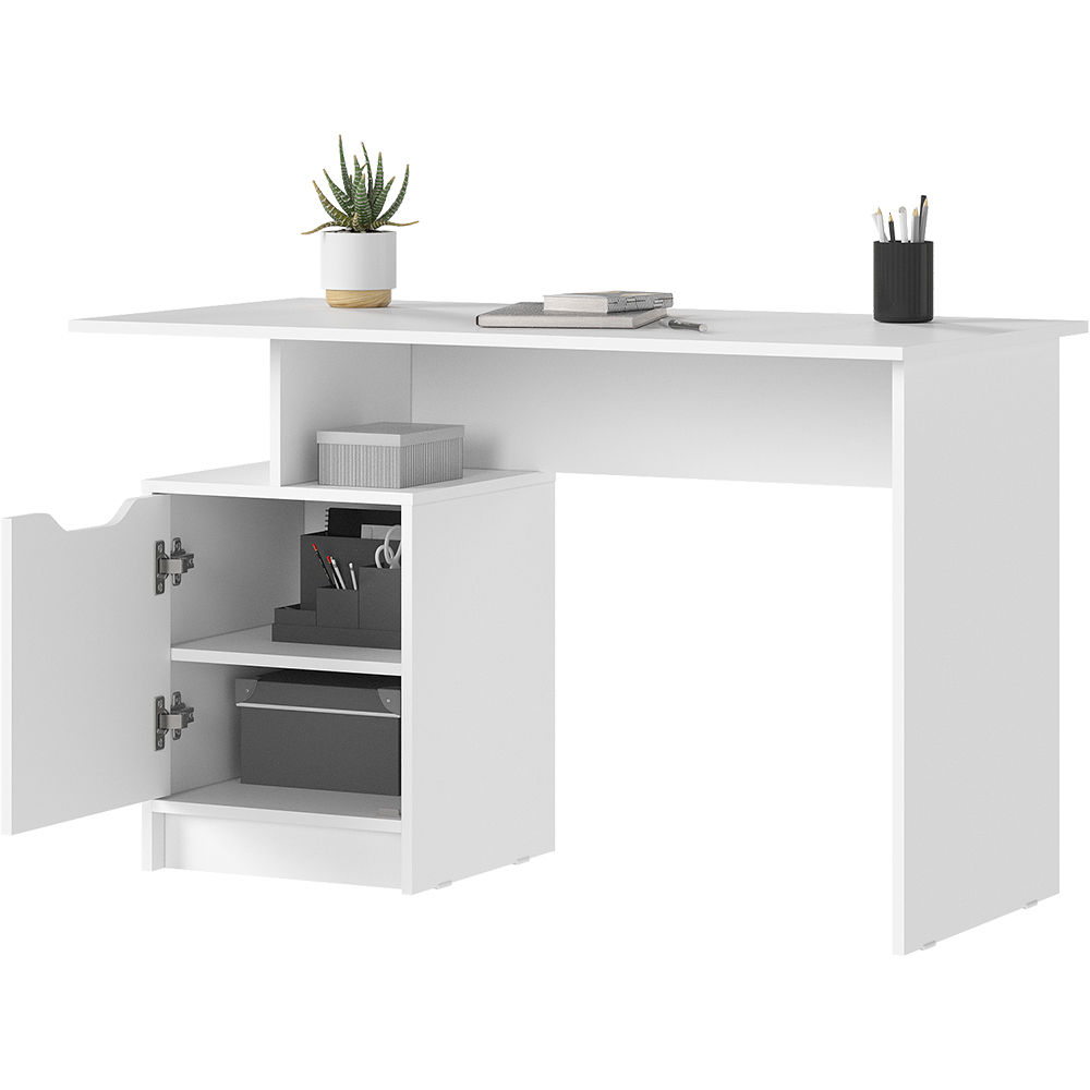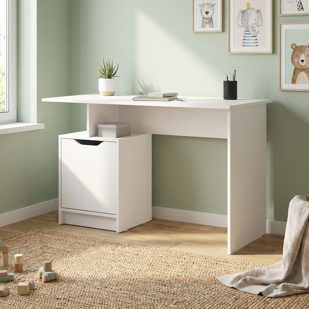 Письменный стол РУНА СТ-01 — это стильное и эргономичное решение, которое идеально подойдет как функциональный стол в детскую или домашний кабинет. Эта модель представляет собой современный письменный стол с тумбой, где открытая ниша позволяет держать под рукой необходимые тетради, а закрытое отделение с аккуратным вырезом вместо ручки обеспечивает аккуратный вид рабочего места. Благодаря лаконичному дизайну и универсальному цвету, этот белый стол гармонично впишется в интерьер, выполняя роль как удобного места для учебы, так и компактного компьютерного стола для работы за ноутбуком.