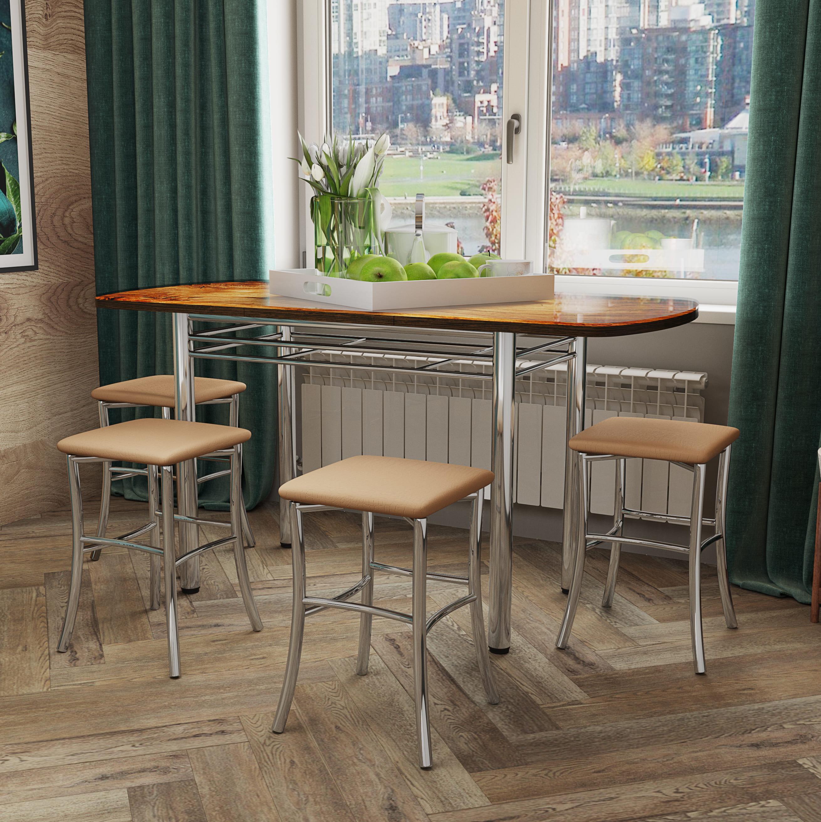 Табурет КВАДРАТ каркас хром // искусственная кожа, бежевый крокодил