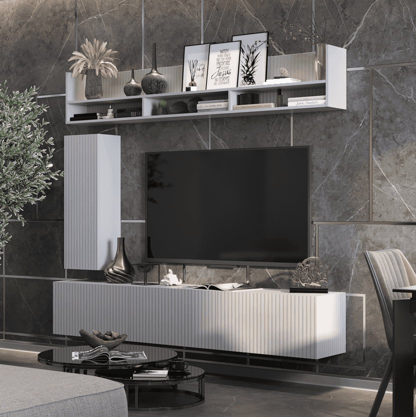 Тумба ТВ КВИНТА 2000 // белый лофт,софт айс