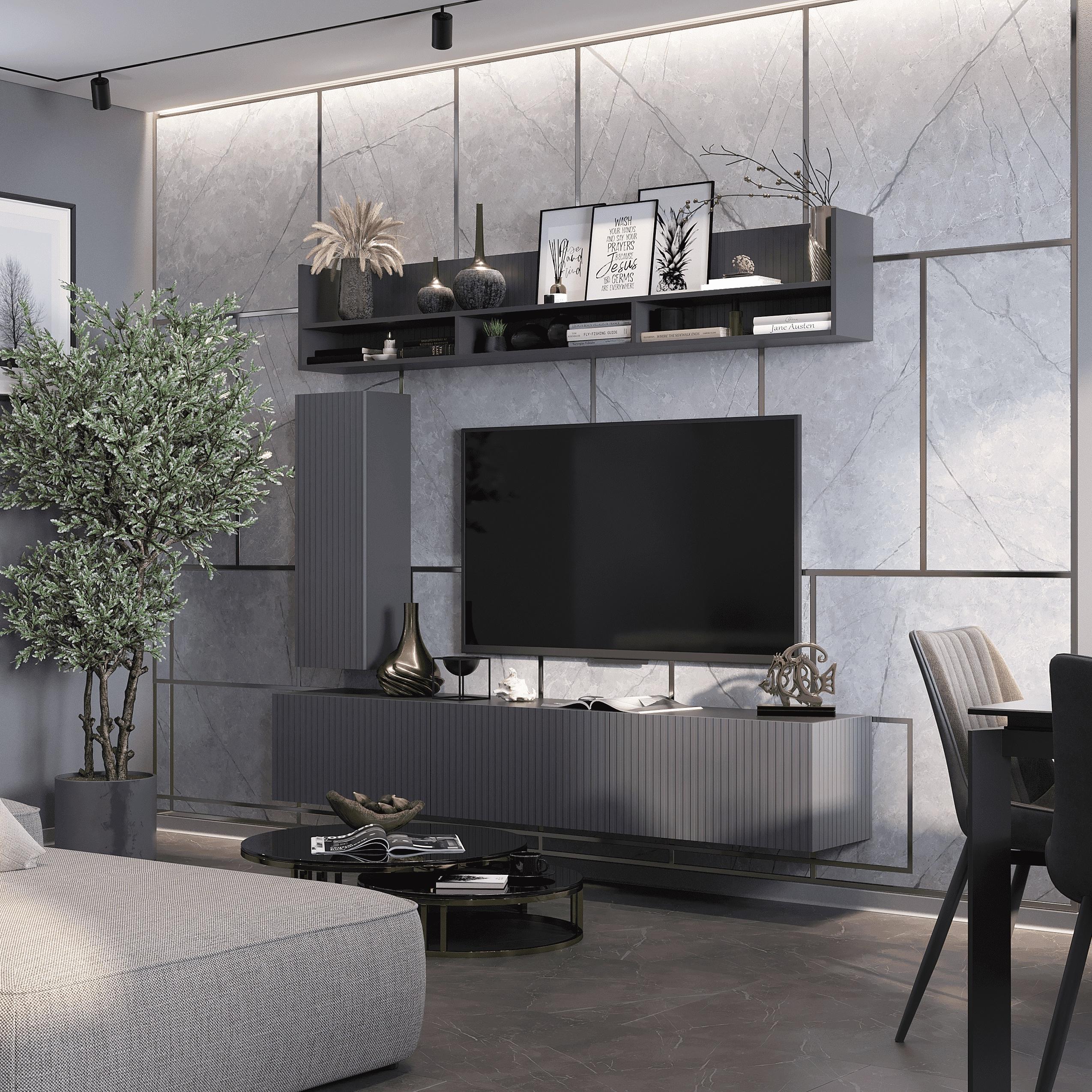 Тумба ТВ КВИНТА 2000 // темно-серый лофт, силк титан