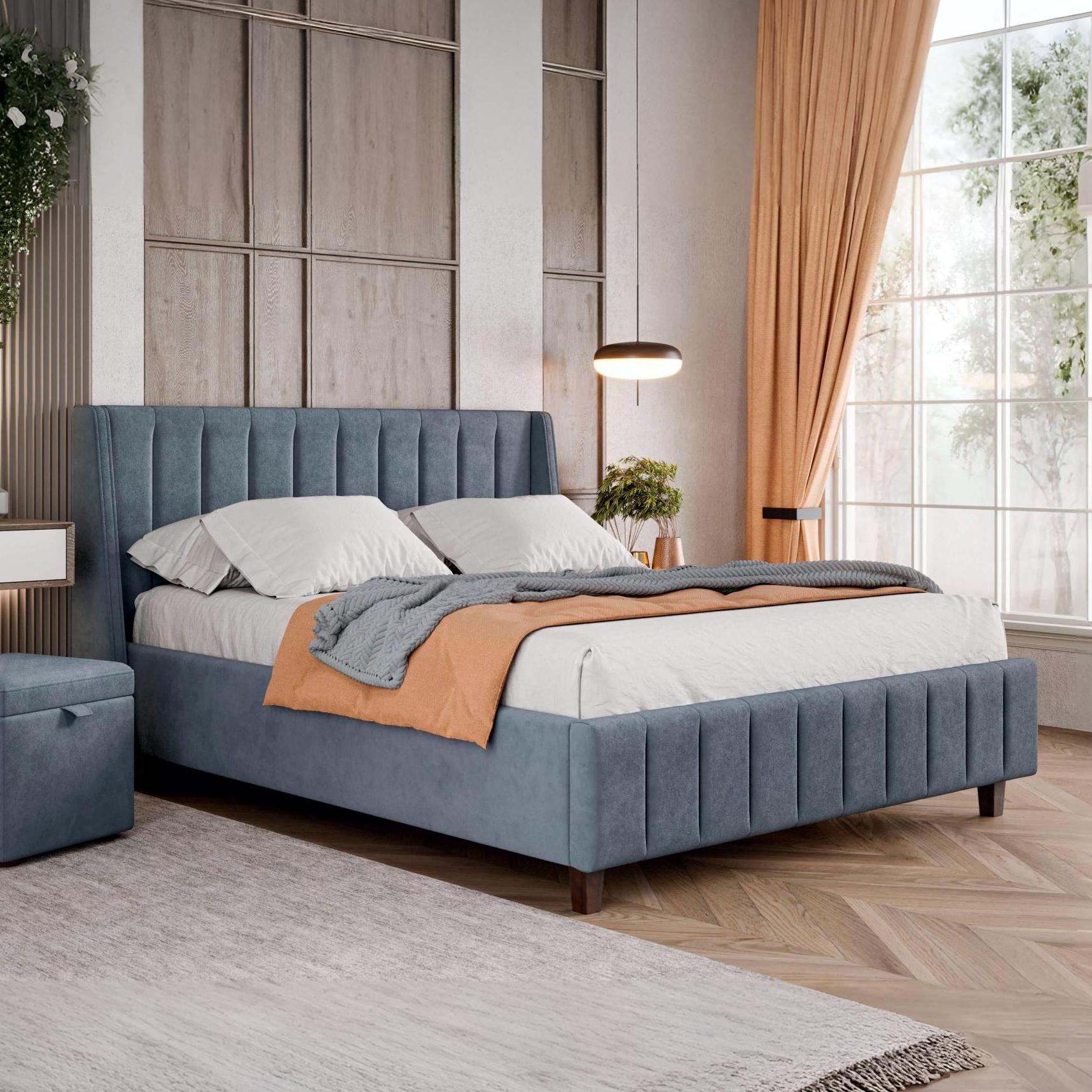 Кровать МИЛАНА 1600 // севен 112, велюр светло-серый