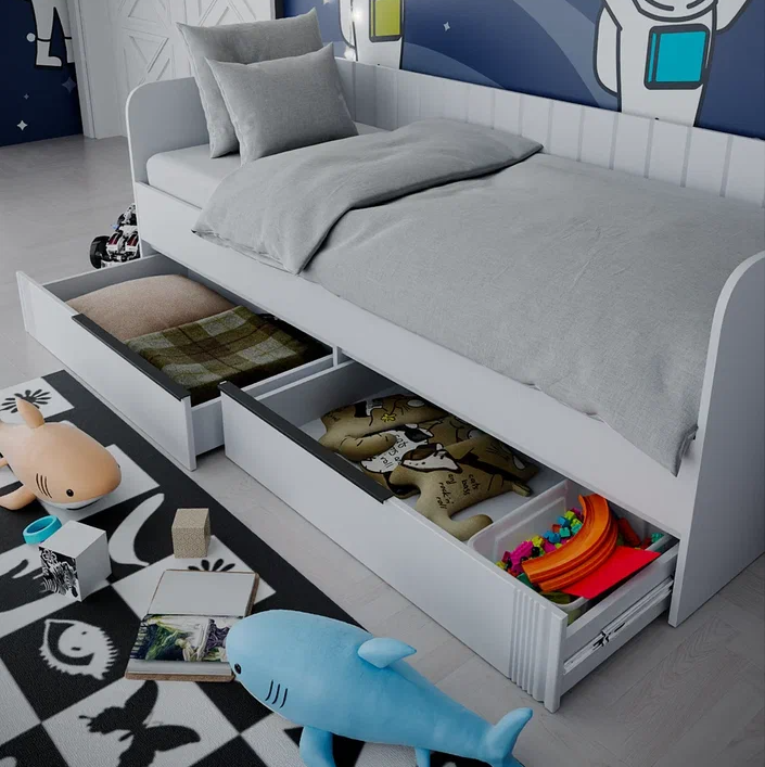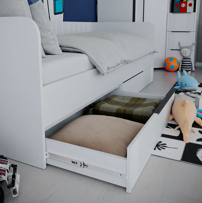 Кровать с 2 ящиками ВИТА 2000 // белый лофт, белый софт