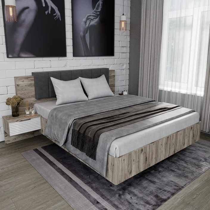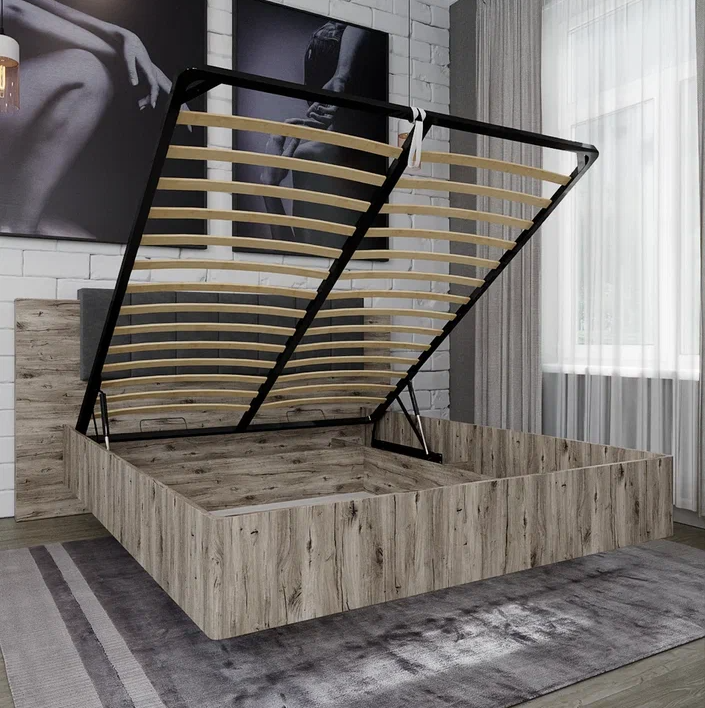 Кровать ДЖУЛИЯ 1600 с подъемным механизмом // дуб крафт серый