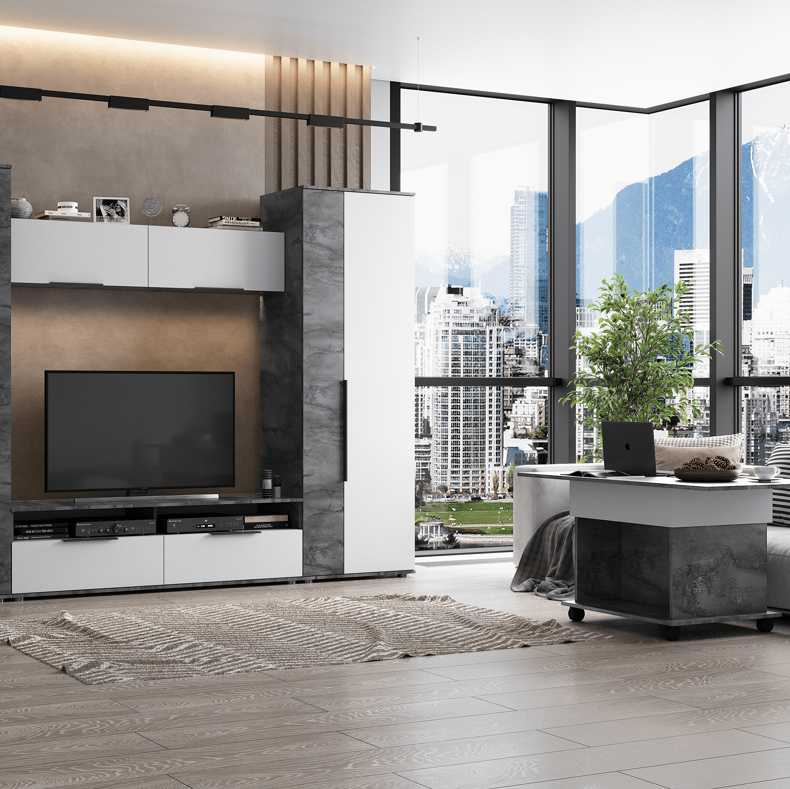 Стол журнальный МОНИКА // айрон рок/белый лофт